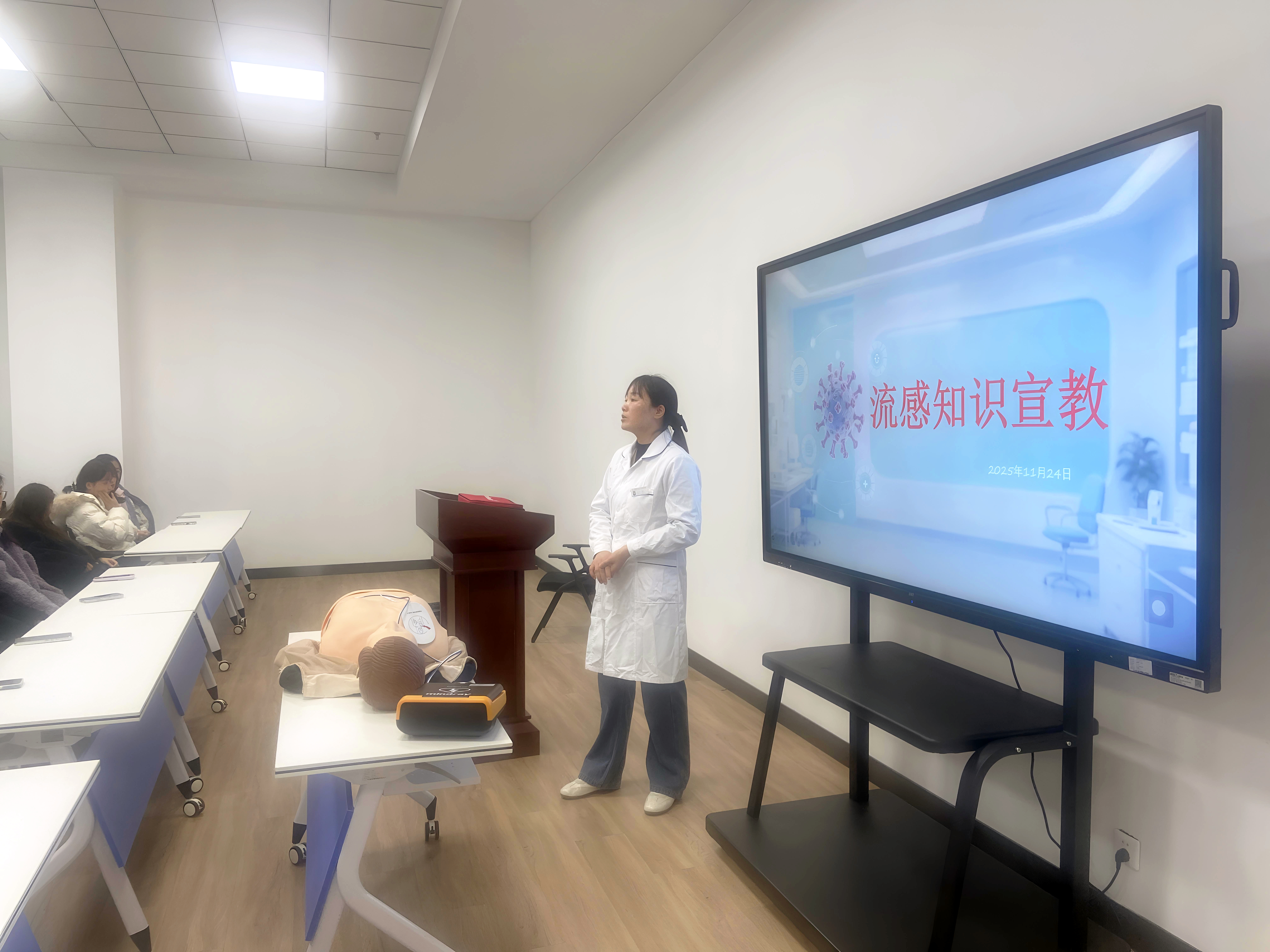 针对冬季流感高发趋势,校医还系统介绍了流感传播途径、症状识别及预防措施,强调勤洗手、戴口罩、保持通风的重要性,并建议易感人群及时接种疫苗。