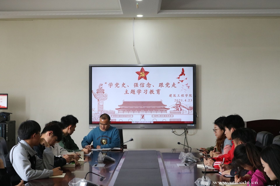 为深入学习贯彻习近平总书记在党史学习教育动员大会上的讲话精神,4月23日,建筑工程学院团总支在建工楼303会议室召开“学党史 强信念 跟党走”主题教育学习会,建筑工程学院团总支全体成员及2019级、2020级各班团支部书记参加会议。