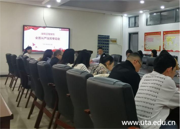 4月12日下午,建筑工程学院党总支在建工楼303召开全面从严治党工作会议。会议由建筑工程学院党总支书记陈传胜主持,学院全体教职工参会。
