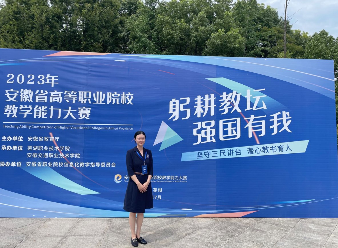曾获2023年安徽省高等职业院校教学能力大赛一等奖(大类排名第一)、安徽职业技术学院第八届教学能力大赛一等奖、安徽职业技术学院第十五届教学基本功大赛二等奖。2022-2023学年,所带课程获评安徽职业技术学院优质课,教师年度质量考评优秀,获评安徽职业技术学院年度优秀教师。