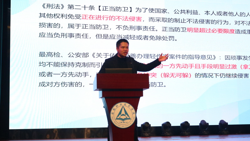 武飞从大学生常见违法犯罪行为的预防和反诈骗、防范套路贷的基本知识两个方面展开,以生动的语言和贴近生活的真实案例,并结合相关法律法规条款,为同学们展开了一场别开生面的法治教育讲堂。他指出,近年来大学生违法犯罪现象时有发生,这不仅耽误了个人前途,也给家庭和社会带来了沉重负担,并希望同学们在大学生活中做到知法、学法、守法、用法,内化于心外化于行,争做新时代文明大学生。
