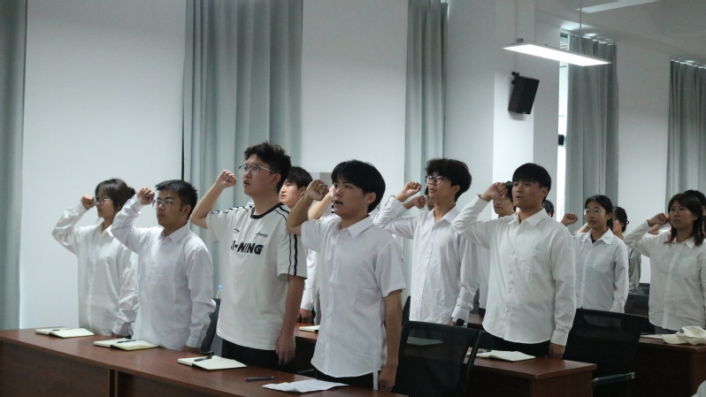 随后,陈传胜为上一届团学组织骨干成员颁发了聘书。在聘任仪式结束后,全体成员面对团旗庄严宣誓,激昂的誓言展现了新一届学生会成员的精神风貌和坚定的前进决心。