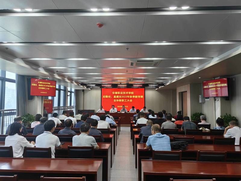 (基建处通讯员 余丽娟 )8月31日上午,基建处、后勤管理处召开2023年秋季新学期全体教职工大会,党委委员、副院长宣岩松,党委委员、基建处处长胡坤,后勤管理处、基建处全体教职工参加会议。会议由胡坤主持。