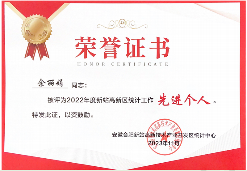 基建处余丽娟同志在新站区统计局开展的2022年度新站高新区统计工作中荣获先进个人,一直以来,基建处一如既往支持、配合新站区统计,助力统计工作高质量开展。在过去的一年里,我部门余丽娟同志始终保持严谨求实的工作作风,力求每一个数据的准确,并准时做好数据搜集、整理、上报工作。(基建处 柳周)