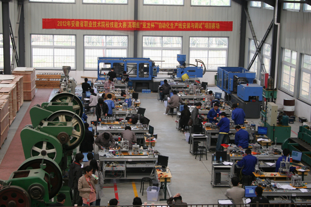 2012年安徽省职业院校技能大赛由省教育厅、省经济和信息化委员会、省财政厅、省人力资源和社会保障厅共同举办,是我省第五次成功举办该项大赛。此次大赛组委会指定由我院承办(高职组)智能楼宇安防布线与调试、自动生产线安装与调试、机器人技术应用、服装设计、化工检修钳工、化工总控、化学检验、仪表维修和有机合成等9个项目。这是我院第5次承办该项大赛竞赛项目,也是我院历年来承办项目最多的一次。为了确保大赛顺利举行,学院成立了赛点组委会和仲裁委员会,全程指导和监督比赛。赛点组委会主任由院长陈传海担任,赛点仲裁委员会主任由院纪委书记曹燕担任。比赛期间,赛点组委会领导亲临赛场,对裁判员、工作人员提出要求,一是要求大家一定确保大赛公平、公正,二是要求大家做好大赛各项后勤保障工作,三是要做好对裁判员、参赛队员的服务工作。