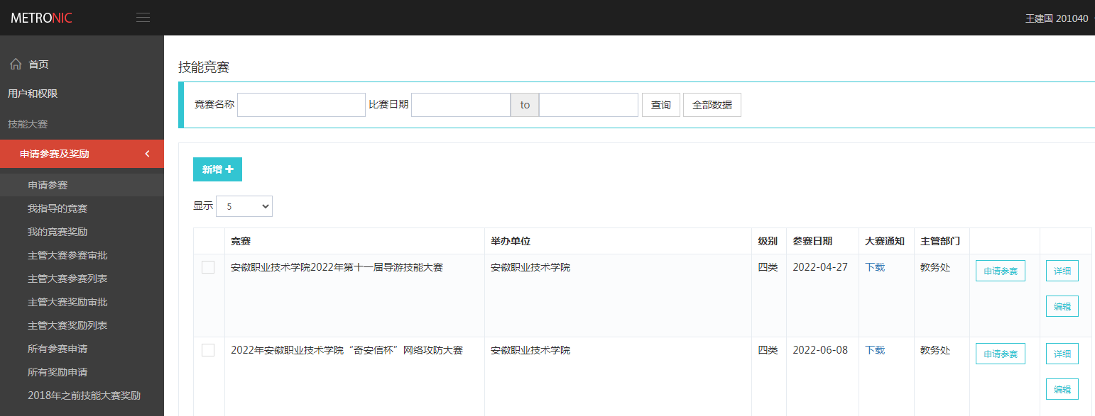 第三步:由教务处在技能大赛管理系统发布竞赛信息。