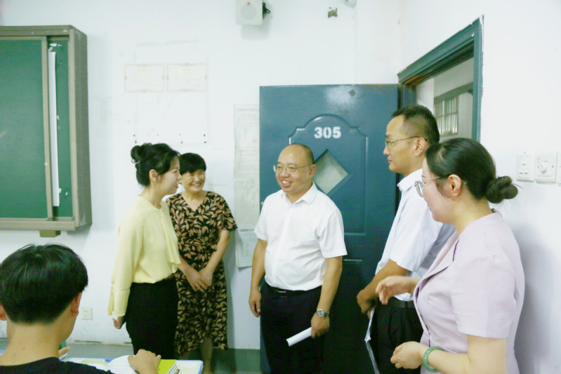 本网讯(教务处)9月2日新学期开学第一天,为保障2024-2025学年第一学期教学工作的正常运行,加快新学期各项教学改革建设工作的稳步推进,全面了解和掌握学院各校区开学教学准备和开展情况,学院党委书记李方泽,学院党委副书记,院长盛鹏等院领导在教务处等有关部门的陪同下,分成八个检查小组深入三个校区的教学楼,对新学期教学准备、教师到岗、学生报道等情况进行了全面细致的督导检查。