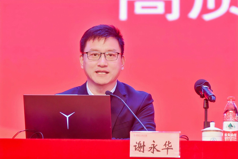 论坛第二部门由合肥幼儿师范专科学校校党委副书记、院长余桂东主持,由南京工业职业技术大学党委书记、教授谢永华作主旨报告。谢书记结合南京工业职业技术大学高质量发展的实际案例,以高水平专业和专业群建设为主线,聚焦我国职业教育高质量发展的历程,探讨“双高”建设的新思路,分享了南京工业职业技术大学在高水平专业群建设和“五金”建设方面的积极探索。