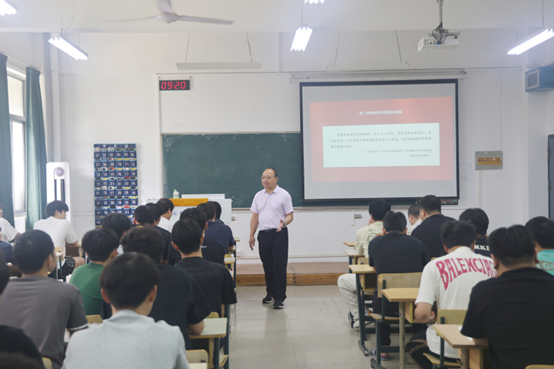 随后,李方泽围绕“党的建设的主要内容”给同学们上了一堂生动的思政课。他带领同学们深入学习了习近平总书记关于党的建设的重要思想的核心要义、精神实质和丰富内涵,生动阐述了党的建设六大方面的内在逻辑关系。他指出,党的建设是以政治建设为统领,思想建设是基础性建设,组织建设是基本保障,纪律建设是反面约束,作风建设是正面引导,而制度建设贯穿始终,并结合班级、学院发展实际,强调全体师生要将这一思想内化于心、外化于行,切实融入到日常工作中。