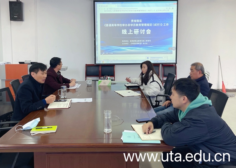 2021年12月2日上午9点,在电教楼309会议室,继续教育学院全体员工参加了由教育部职业教育与成人教育司指导,《中国远程教育》杂志社举办的关于贯彻落实《普通高等学院举办非学历教育管理规定(试行)工作》的线上研讨会。