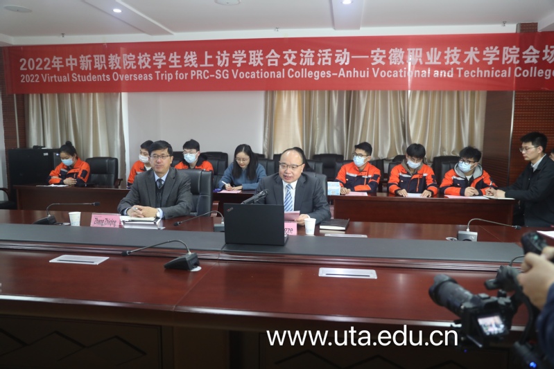 中国驻新加坡大使馆教育处参赞康凯在致辞中表示,感谢安徽职业技术学院等四所职业院校对本次活动的大力支持。2021年11月22日,习近平总书记在中国-东盟建立对话关系30周年纪念峰会上发表的重要讲话指出,中方愿与东盟加强职业教育学历互认等合作。多年来中新两国在职业教育领域的合作取得了可喜成绩。疫情挡不住中新两国师生的交流,线上访学的形式可以让更多学生参与其中,进一步推动我国职业教育对外开放,让职业教育的合作成果更好地造福两国人民。