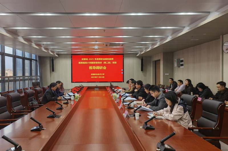 11月24日,安徽省高等学校师资培训中心常务副主任台启权一行莅临必赢,开展2025年度国培项目(第二批)视导调研工作。校领导张智清热情接待专家组一行,继续教育学院(培训中心)、智能制造学院、计算机与信息技术学院负责人,国培项目负责人、班主任代表及学员代表参会。
