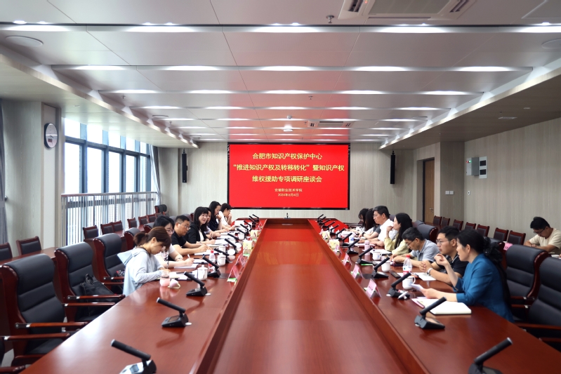 科研处负责人从建立备案机制,做好专利信息统计和积极搭建平台,促进成果产出转化两个方面汇报了我院专利申请以及成果转化工作,并从合肥知识产权保护中心职教城分中心的建设、知识产权维护保护援助工作、学校专利转化运用与盘活、非正常专利处理四个方面回答了调研的主要内容。