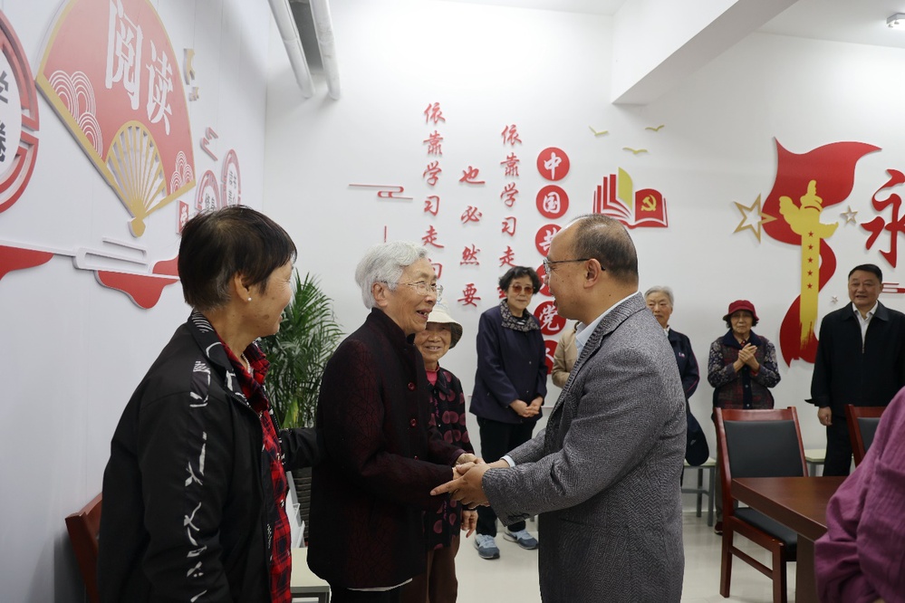 李方泽代表学院领导班子对离退休党总支党建书屋和老同志活动中心揭牌启用表示祝贺。他指出,尊老敬老是中华民族的优良传统,党建书屋和活动中心的建立既是将党建和传统文化相结合,又是将教育和养老相结合,开辟了党建工作新领域,赋予老龄事业新内涵。学院始终把离退休老同志工作列为工作重点,秉承“老有所养、老有所学、老有所乐、老有所为”的服务宗旨,继创建新站区第一所老年大学后,又创建了老同志活动中心。离退休工作处和图书馆合作共建党建书屋,为服务老同志提供新平台,探索了老年工作的新模式。他希望老同志们继续发挥政治优势、经验优势、智慧优势,为学院高质量发展出谋划策、建言献策。