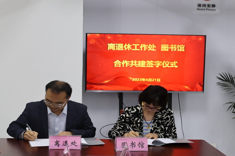 在热烈的掌声中,李方泽和退休老干部乔德宝一同为党建书屋和老同志活动中心揭牌。随后,离退休工作处与图书馆签署合作共建协议,图书馆为活动中心提供了第一批涵盖国家历史、名人传记、廉政文化、红色故事、政治理论等多个类别共1200余册图书期刊,后续,图书馆将根据老同志们的阅读需求,为活动中心定期更新图书期刊品种。