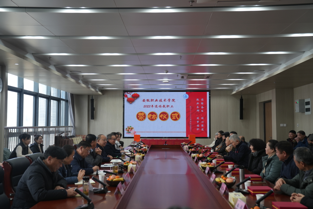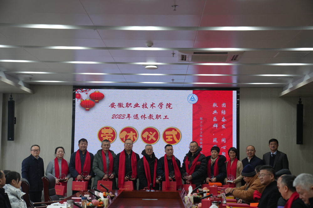 (离退休工作处通讯员 解滨)团结奋发,同心聚道;敬业乐群,筑梦安职。1月22日下午,学院举行2023年度退休教职工荣休仪式。院领导李方泽、盛鹏、张智清,办公室、组织部、宣传部、人事处、工会、离退休工作处等部门负责人及离退休党总支各支部书记参加仪式,共同为41位荣休教职工送上祝福。仪式由党委委员、副院长张智清主持。