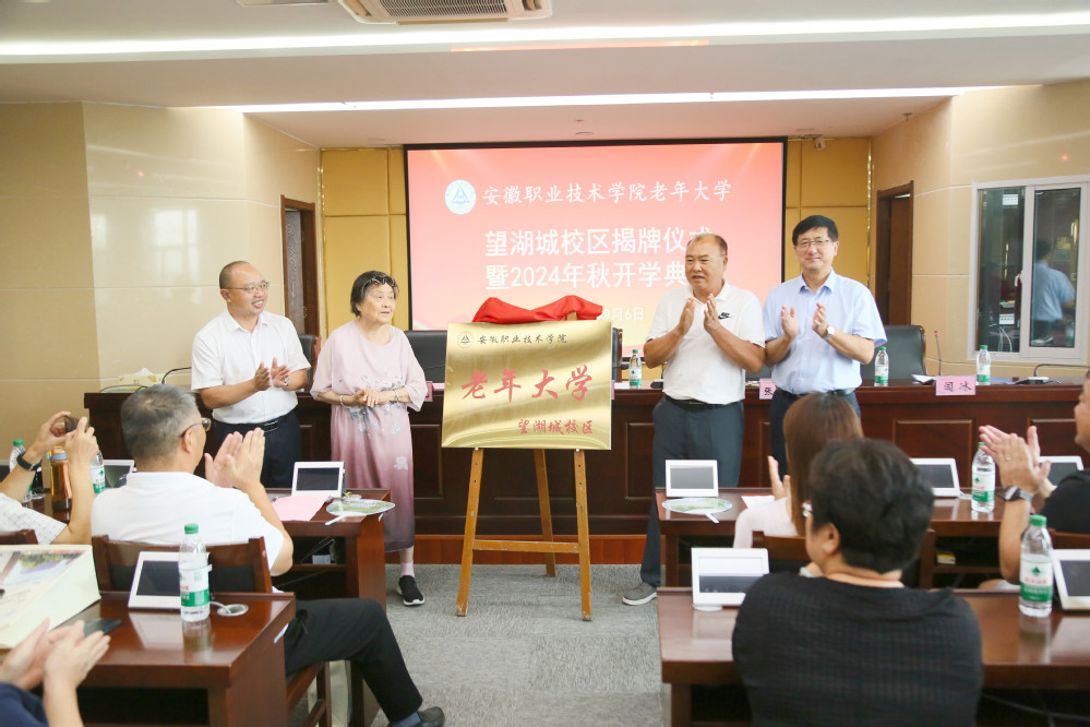 9月6日下午,学院老年大学望湖城校区揭牌仪式暨老年大学2024年秋季学期开学典礼在图文信息中心九楼会议室举行。学院党委书记李方泽,学院党委委员、副院长、老年大学校长张智清,学院办公室、离退休工作处负责人及近百名学员代表等出席典礼。