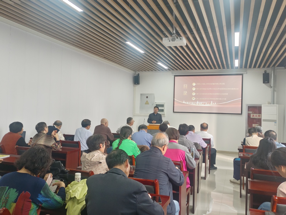 11月14日,离退休党总支组织开展深入学习宣传贯彻党的二十届三中全会精神和习近平总书记考察安徽重要讲话精神专题党课活动。党课由党总支书记闫冰主讲,支离退休党总支总支委员,所属党支部支委、退休党员代表和老年大学学员代表参会。