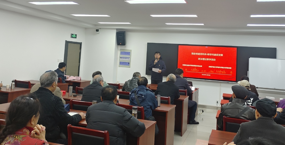 安徽开放大学副教授陈俊老师作“学习贯彻党的二十届三中全会精神和习近平总书记考察安徽重要讲话精神”专题讲座,强调要把学习贯彻习近平总书记考察安徽重要讲话精神与学习贯彻党的二十大和二十届三中全会精神结合起来,一体深学细悟、整体融会贯通、坚决贯彻落实。要深刻领悟习近平总书记关于全面深化改革的一系列新思想、新观点、新论断,进一步树牢全局意识、战略意识、责任意识,充分发挥多重国家发展战略叠加优势,奋力谱写中国式现代化安徽篇章。
