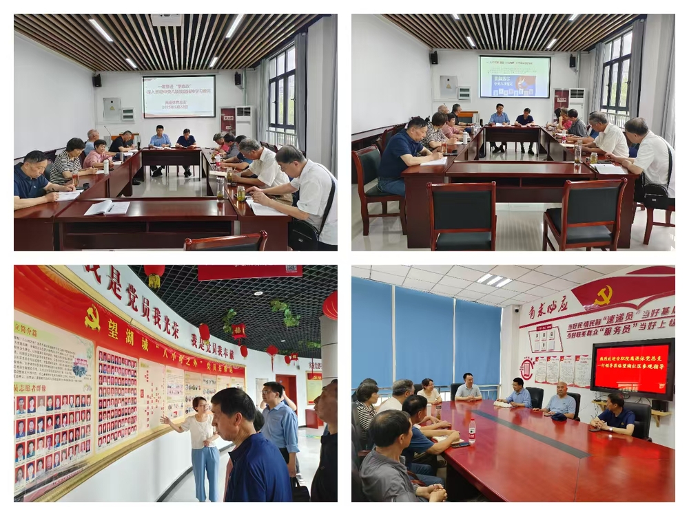 5月22日下午,离退休党总支在老年大学望湖城校区召开党总支理论学习中心组(扩大)学习会并前往望湖社区参观调研社区党建和党员志愿服务社区等工作。党总支委员、各支部书记参加会议,会议由党总支书记闫冰主持。