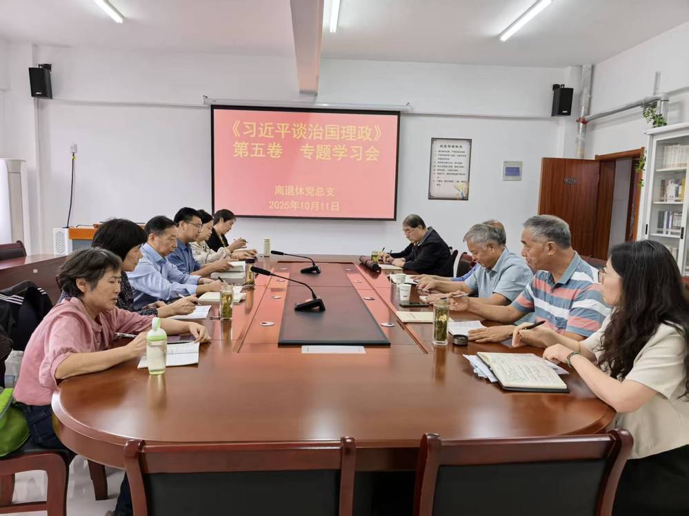 10月11日下午,离退休党总支举行理论学习中心组(扩大)学习会议,专题学习《习近平谈治国理政》第五卷。党总支支委、各支部书记参加会议,会议由党总支书记闫冰主持。