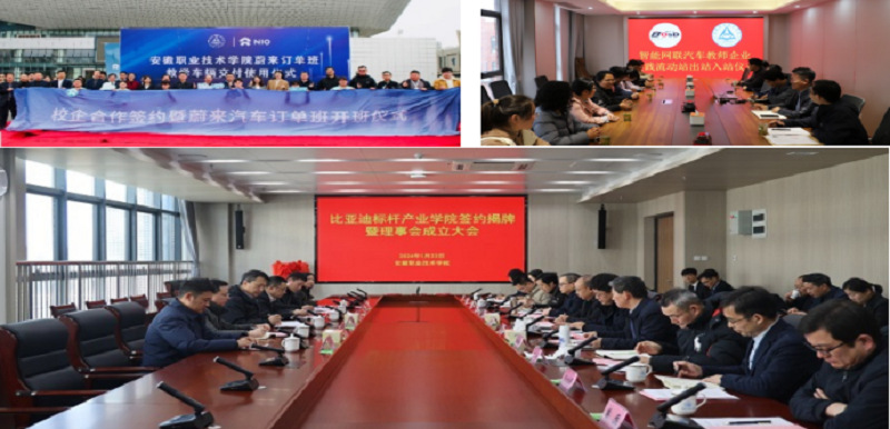 与行业龙头企业,合肥比亚迪、百度智行、蔚来汽车、安徽合力、合肥长安等建立校企合作关系,打造集双师团队、人才培养、技术应用、社会服务、创新创业等功能于一体的高水平产教融合平台。