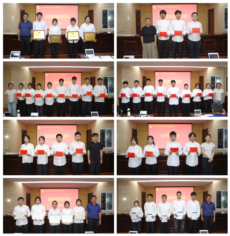 会议第一阶段。参会领导老师分别给荣获2024年度安徽职业技术学院“五四红旗团支部”“优秀共青团干部”“优秀共青团员”“青年技术能手”“优秀志愿者”等称号的组织和个人颁发荣誉奖牌和证书。朱永国代表学院党总支对获奖组织和个人表示祝贺,对学院团总支一年来取得的成绩表示肯定,对青年学子提出三点希望,一是要坚定理想信念,立德修身志存高远;二是要理实结合,常读书读好书,把知识践行到行动中;三是要担当作为,青春为中国式现代化挺膺担当。