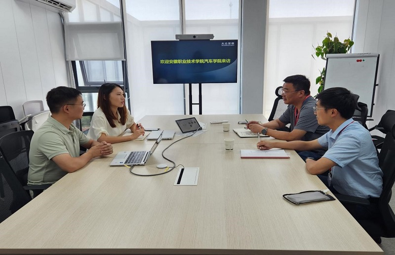 在座谈会上,双方围绕校企合作框架展开务实讨论。邹正军提出,依托大众安徽的产业资源与技术优势,联合组建“安职-大众订单班”,通过课程共建、师资共享、工学交替、实习实训等方式实现“入学即入岗”的培养目标。李甜甜则详细介绍了企业“双元制”培养方案,强调理论与实践并重,学生将分阶段参与企业项目研发与生产实践,确保技能培养与行业前沿同步。此外,双方就推进深度合作达成初步意向,计划通过定期互访机制深化合作层次。
