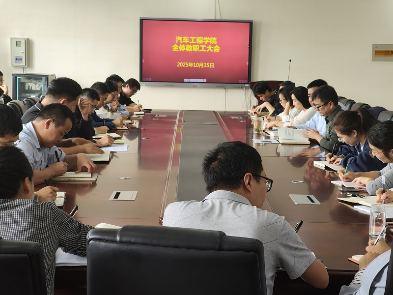 10月15日,汽车工程学院在会议室召开全体教职工大会,学院党政负责人及全体教职工参加会议,副院长邹正军主持会议。