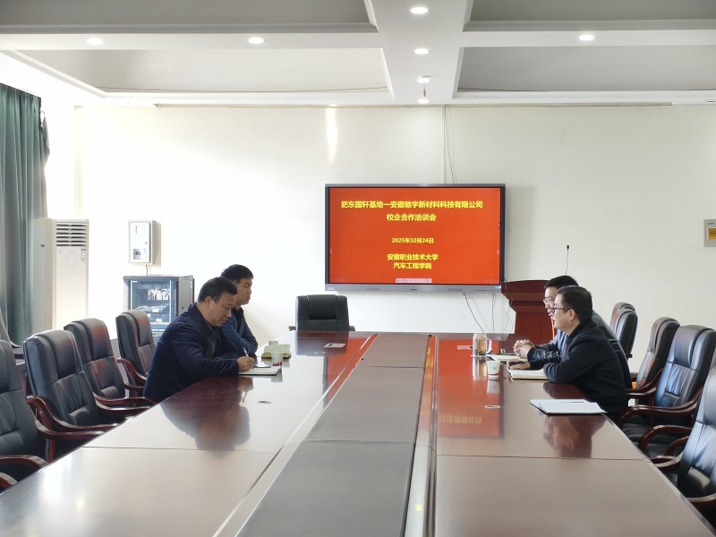为精准对接智能新能源汽车产业人才需求,积极拓展校企合作,10月25日,汽车工程学院与安徽驰宇新材料科技有限公司在会议室举行校企合作洽谈会。安徽驰宇新材料科技有限公司总经理曹有德、人力资源部经理袁锦福、汽车工程学院副院长鲁磊、邹正军和骨干教师参加会议。