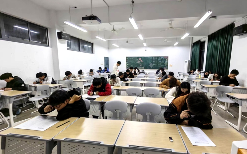 竞赛首环节为理论笔试,共有来自各专业100余名同学报名参与。考察内容覆盖新能源汽车原理、电池管理系统、汽车文化、新能源汽车产业发展等核心知识点。试题兼具专业性与普及性,既考察了参赛者对三电系统(电池、电机、电控)的理解,也融入碳中和政策、能源转型等宏观议题。
