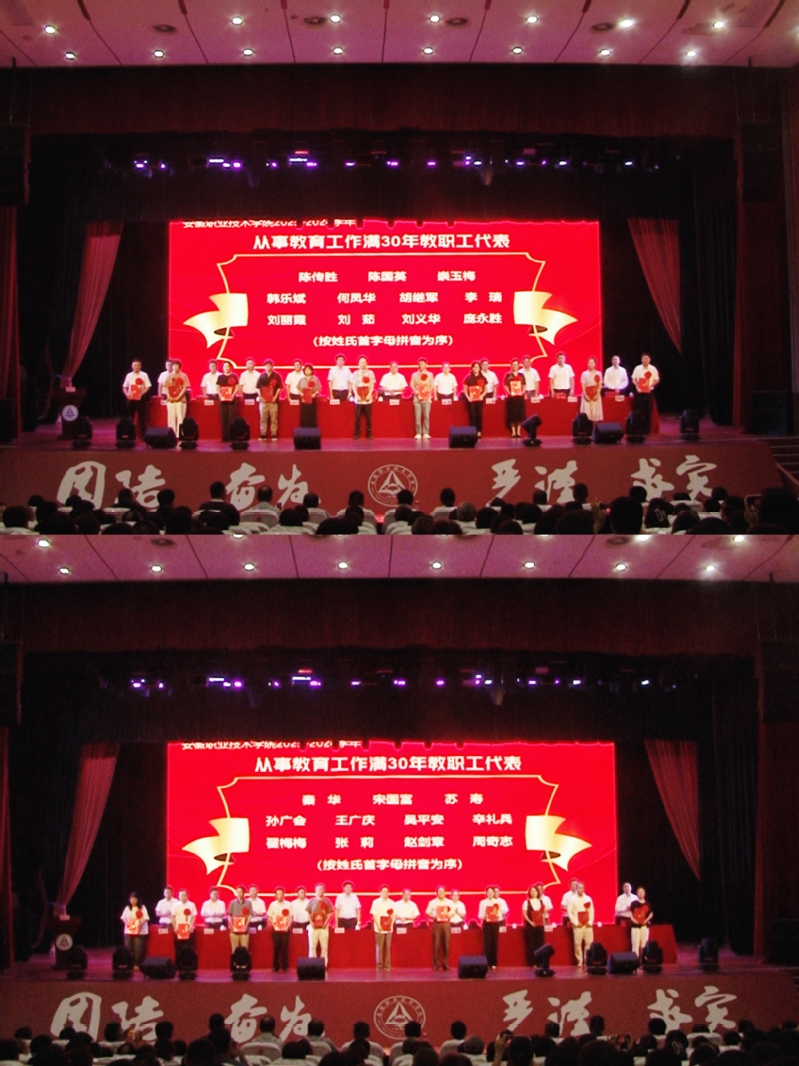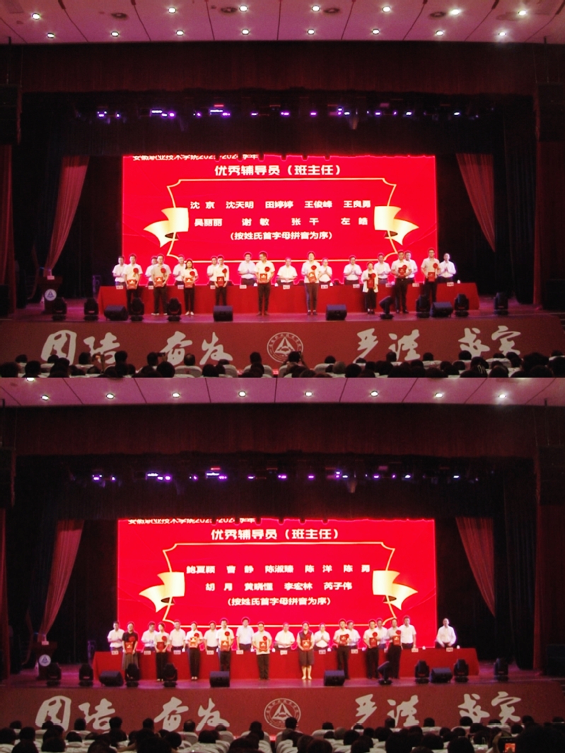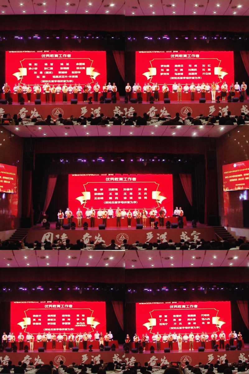 会上,党委委员、副院长张智清宣读了《关于向从事教育工作满三十年的教职工颁发荣誉证书的决定》,党委委员、副院长杨林国同志宣读学校党委《关于表彰2023-2024学年“优秀教师”“优秀教育工作者”和“优秀辅导员(班主任)”的决定》,主席台领导为以上教师进行颁奖。同时,大会还对荣获安徽省三八红旗手的宿伟老师、2024年安徽省优秀教师的雷纶源老师和荣获安徽省教育工作先进集体称号的汽车工程学院予以表彰,李方泽为他们佩戴绶带、颁发锦旗。
