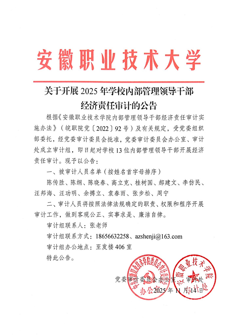 关于开展2025年学校内部管理领导干部经济责任审计的公告