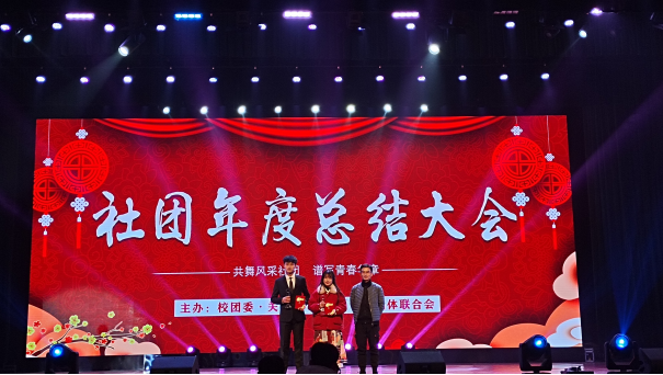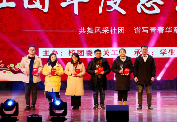 会上,对贾佳、袁涛、陈芳芳、倪翠萍、张进成等五位社团优秀指导老师进行了表彰,知礼国学社、舞蹈协会、绿色环保协会、天翼动漫社、武术协会被评选为五星社团,新媒体协会、模玩手作协会被评选为最佳进步社团,羽毛球协会、酷滑协会、书画协会被评选为最受欢迎协会。