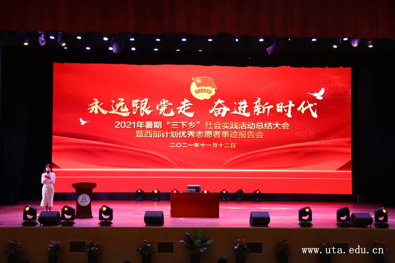 本网讯(院团委通讯员 石可)11月12日下午,必赢2021年暑期“三下乡”社会实践活动总结大会暨西部计划优秀志愿者事迹报告会在大学生活动中心顺利举行。党委委员、副校长陈行出席活动,院团委副书记余搏立、贾亮亮及专职团干老师,各二级学院团总支书记、“三下乡”社会实践团队师生以及四百余名学生代表参与了本次活动。