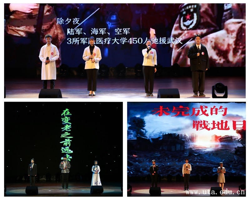 比赛中,来自机械工程学院的李萌用《一个声音》,描绘了英勇的无产阶级战士在战斗中挥洒热血,舍生取义的伟大形象,彰显了先烈们钢铁般的意志;汽车工程学院的张梦利同学以《诗意中国》的唯美语言,为观众们描绘了壮美辽阔的祖国风景图,表达了当代青年对祖国山河的热爱和赞美。群诵环节,情景朗诵《采蒲台的苇》以形象的角色设计,逼真的情节演绎,为观众们再现了抗战期间白洋淀人民英勇不屈,顽强抗争日本侵略者的英雄事迹;《在变老之前远去》中,选手们动情地讲述了因公牺牲的山村支教老师马骅的故事,唱响了青年志愿者献身教育、忘我付出的伟大颂歌。选手们精湛的表演,默契的配合深深地震撼了现场的全体师生,掌声在活动中心经久不息。