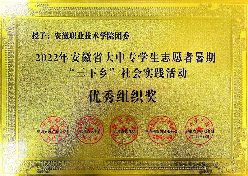 2022年安徽省大中专学生志愿者暑期“三下乡”社会实践活动优秀组织奖