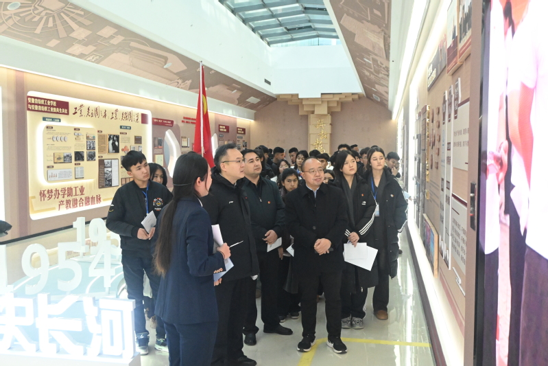 会前,李方泽陪同交流团先后参观了东山、新能源汽车产教融合实训基地、安徽文化实践教学基地等地。在“一站式”学生社区,实地感受学院在思想引领、道德培育等方面的特色做法及亮点。在至高体育馆,皖疆两地学生“牵手”共同参与体育互动,搭建友谊桥梁。校史馆中,沉浸式体验学院从创建到发展壮大的完整历程和丰厚文化底蕴。