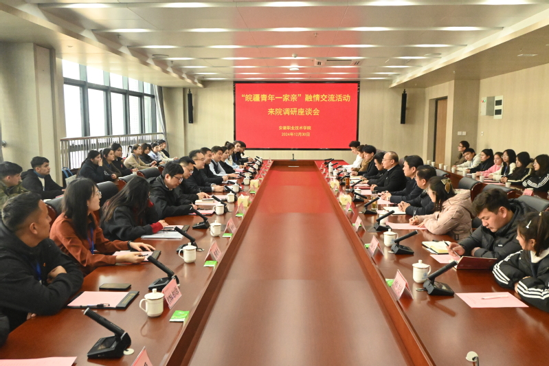 12月30日,“皖疆青年一家亲”融情交流活动在学院成功举办。团省委副书记、省青联主席李波,和田地区团委副书记阿卜杜热合曼·麦提图尔荪,团省委联络部,省直团工委,团合肥市委有关负责同志来院调研座谈,学院党委书记李方泽,党委委员、纪委书记李荣富,党委委员、中专部主任陈晓春,相关部门负责同志及学生代表参加会议。
