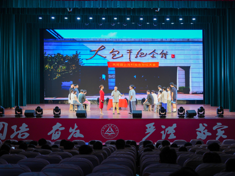 演出在情景剧《流淌在小岗村的中国红》中拉开帷幕。演员们以细腻的表演,生动还原了小岗村十八位农民按下“红手印”,开启农村改革伟大征程的历史场景。田间劳作的艰辛、村民们对美好生活的渴望、改革突破时的振奋,每一个情节都扣人心弦,将观众带回那个充满激情与希望的岁月。现场师生仿佛置身于小岗村的田间地头,深刻感受到了敢为人先、勇于创新的“小岗精神”,不少同学为这份开拓进取的勇气与担当所打动。
