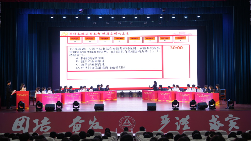 竞赛共设置个人必答题、小组必答题、小组抢答题和风险挑战题四种类型,重点围绕习近平新时代中国特色社会主义思想、党的二十大精神和党的二十届二中、三中全会精神、习近平总书记考察安徽重要讲话精神、习近平总书记给谢依特小学戍边支教西部计划志愿者服务队队员回信精神、深入贯彻中央八项规定精神学习教育知识等方面展开,引领广大团员青年多形式学习党的创新理论,传播党的声音,激励广大团员青年坚定理想信念,练就过硬本领,自觉在学院高质量发展主战场争当排头兵和生力军。