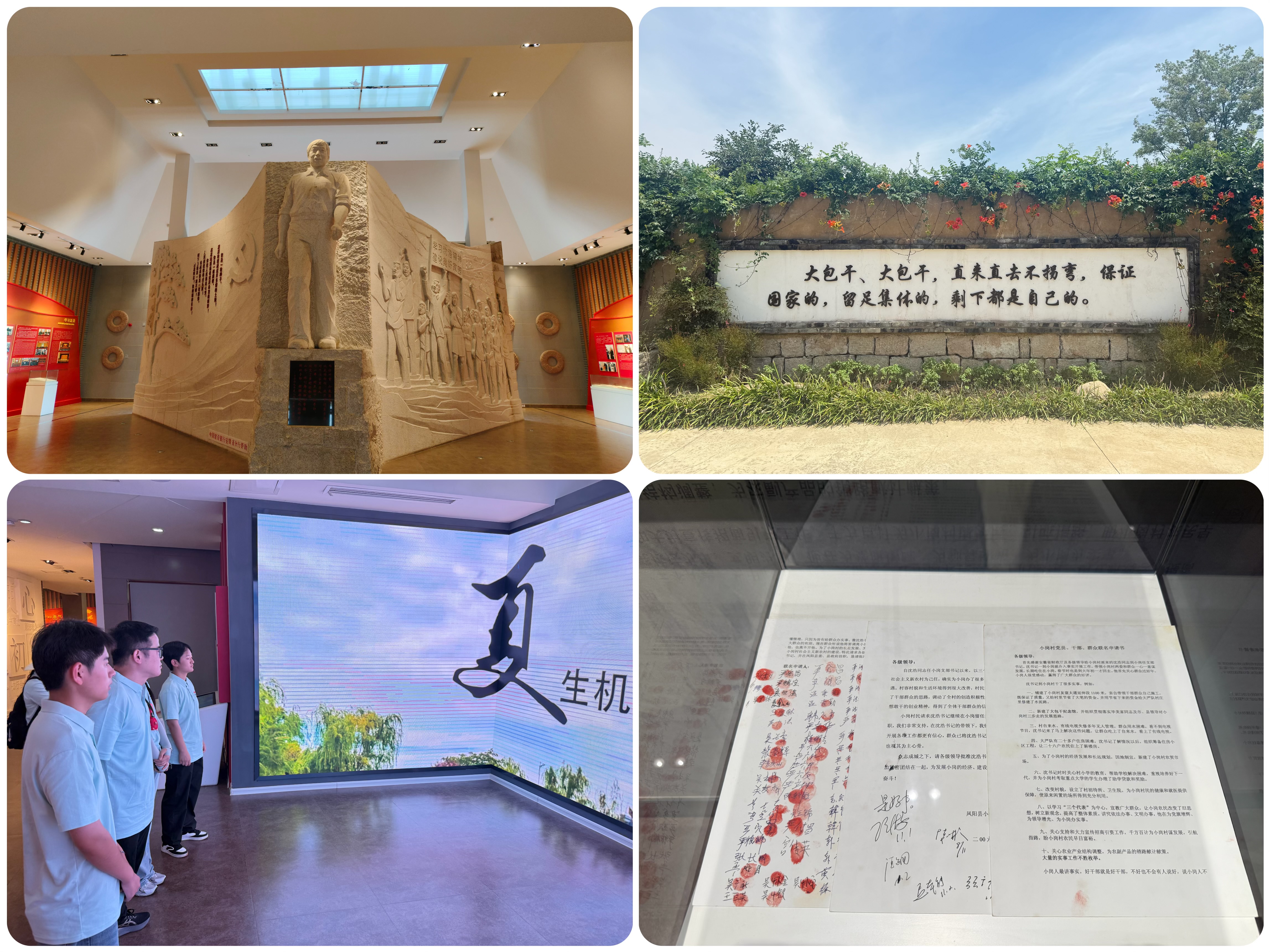 赤印燃情,岗起新程。从历史纵深中解码小岗精神,见证着改革精神的代代传承。在小岗村里感悟“扎根力量”,实践团师生驻足沈浩同志先进事迹陈列馆,泛黄的契约、陈旧的农具、珍贵的影像,将那段波澜壮阔的改革岁月娓娓道来。在土坯屋里触摸“时代温度”,梧桐树荫下,18枚红手印依然滚烫。成员们凝视这份生死契约,仿佛穿越回1978年那个冬夜,油灯摇曳下,蘸满红泥的手指按下的不仅是对温饱的渴望,更是打破桎梏的勇气与开天辟地的担当。在小岗农家聆听“破冰勇气”,成员们围坐在斑驳的木桌前,听大包干带头人严金昌老人缓缓翻开记忆,讲述“大包干”从诞生到推广的蜕变历程,感受“敢为天下先”精神如何点燃中国农村改革的燎原星火,感受红色基因在乡村振兴中的蓬勃生命力,立志在新时代的浪潮中勇立潮头,成为改革创新的践行者。