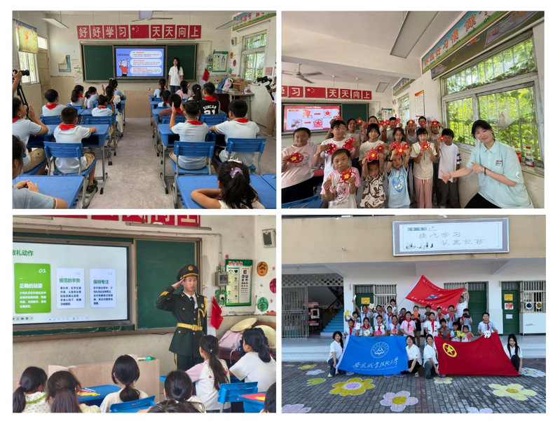 实践团走进费岗小学,精心组织艺术美育手工活动,围绕艺术美育开展“童心向党 巧手筑梦”系列活动。“家风手工课”巧手传情,引导孩子们在家风门牌彩绘中感悟家庭温暖与传统美德;“创意折纸课”指尖生花,在方寸纸张间折叠出童趣与创造力;“升旗护旗宣传课”则通过庄严的仪式感与生动的讲解,深化孩子们的爱国情怀与责任意识;实用的“安全教育课”巧妙融入艺术形式,寓教于乐,筑牢孩子们的安全防线。成员们用热情与才华,将“美”的种子播撒进乡村儿童的心田,为乡村教育注入了鲜活的艺术活力。长丰县融媒体中心对费岗小学美育活动进行了全程纪实,并现场采访了实践指导老师。