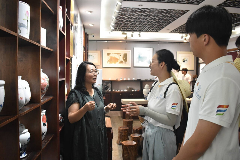 7月3日,团队上午探访百年老字号“汪协泰”,品味舌尖非遗,共议传统工艺在现代市场的创新突围;在县美术馆沉浸式体验掐丝珐琅,于指尖流转中感悟匠心,思索古老技艺焕新的时代密码;在五千年文博园感悟陶瓷和根雕技艺的博大精深。下午,成员们化身“安全讲师”走进晋熙镇龙山社区。趣味游戏迅速拉近距离,干货课程随即登场:防溺水课堂强调水域风险意识,防诈骗课程剖析常见骗局并传授应对技巧,推广普通话环节则通过“小小播音员”“诗词闯关”等互动游戏,架起孩子们通往广阔世界的语言桥梁。文化根脉与生命关怀在此刻交织,青年担当熠熠生辉。