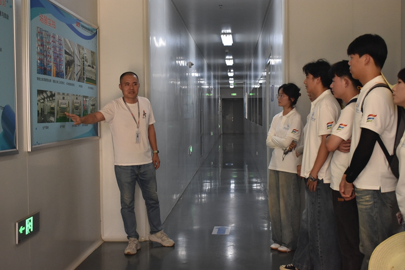 6月30日,团队来到太湖县膜都小镇。在安徽富印新材料、太湖金张科技、安徽泓冠光电等高新技术企业,同学们跳出书本藩篱,深入车间产线,直观触摸功能膜材料与光电显示尖端科技的蓬勃脉动。企业技术骨干与管理层倾囊相授,详解岗位职责与行业前沿,不仅拓宽了同学们的产业视野,更点燃了投身科技强国事业的热情。这趟产业认知之旅,成为一堂生动的“科技报国”思政大课,坚定了大家夯实专业基础、服务国家战略性新兴产业的决心。