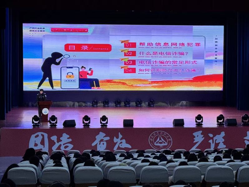此次讲座内容紧贴校园生活,案例鲜活、实用性强,有效填补师生在反诈、反传销知识上的认知盲区,显著提升大家对违法犯罪行为的辨别与防范能力。参与师生纷纷表示,今后将时刻绷紧安全弦,既做好自身防范,也积极向身边人普及相关知识,为建设平安校园贡献力量。(文/周安琪 曹艺星 图/团总支宣传部)