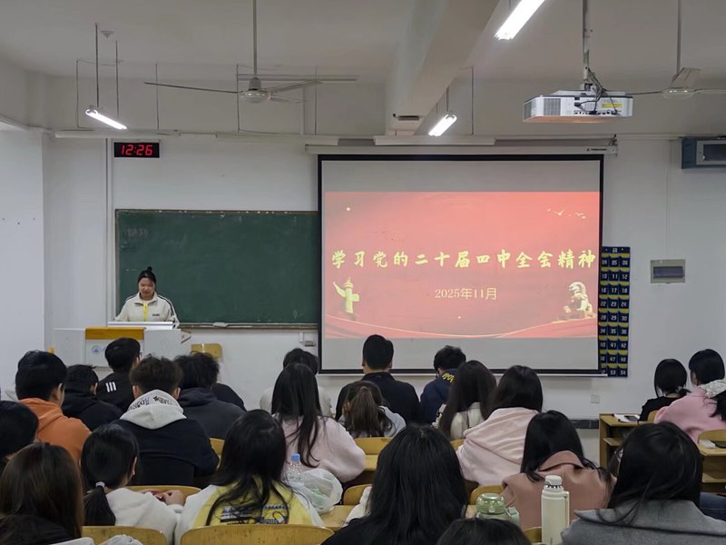为深入学习贯彻党的二十届四中全会精神,引导学生社团把握时代脉搏、增强文化自信,11月12日团委组织学生团体联合会及全体学生社团负责人,在明德楼103教室开展学习党的二十届四中全会精神活动,切实推动党的创新理论融入校园社团建设与发展实践。