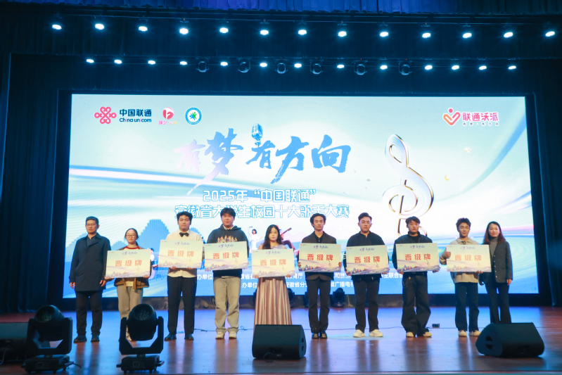 11月22日,由共青团安徽省委员会、安徽省教育厅、安徽省文化和旅游厅、安徽省学生联合会联合主办的2025年“中国联通”安徽省大学生校园十大歌手比赛初赛在必赢成功举行。共青团安徽省委员会学校部副部长汪沫、校党委书记李方泽、党委副书记杨林国、合肥联通党委委员、副总经理金昌钧等莅临现场,与师生共赴一场青春与音乐的盛会。