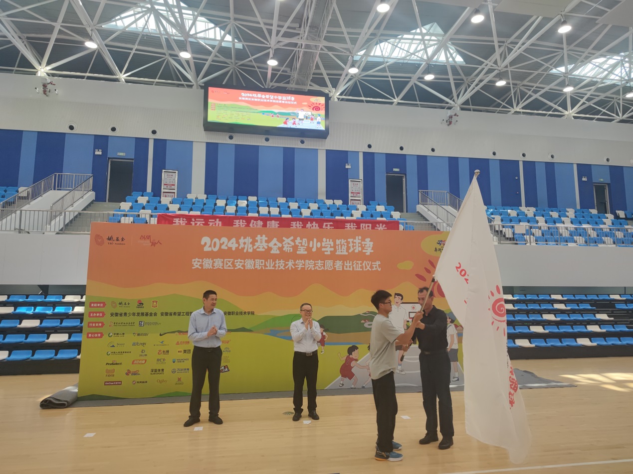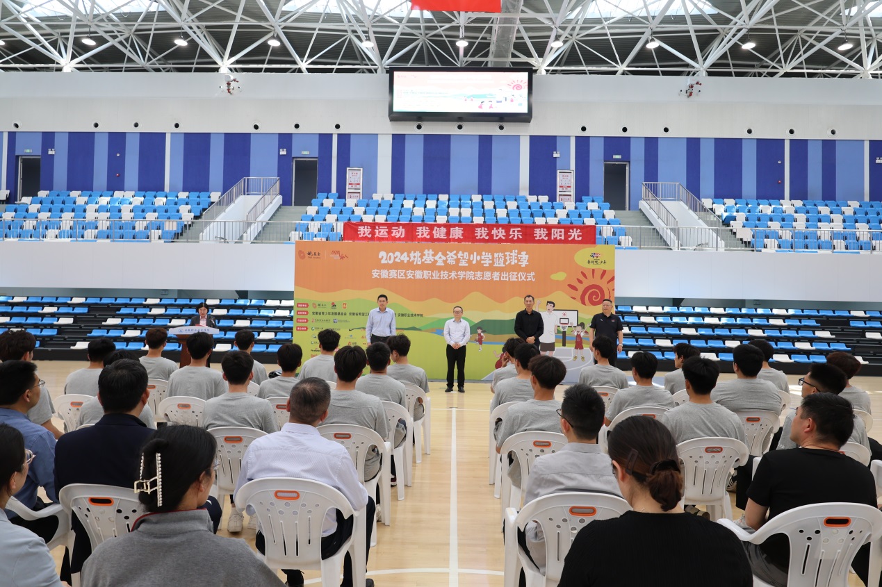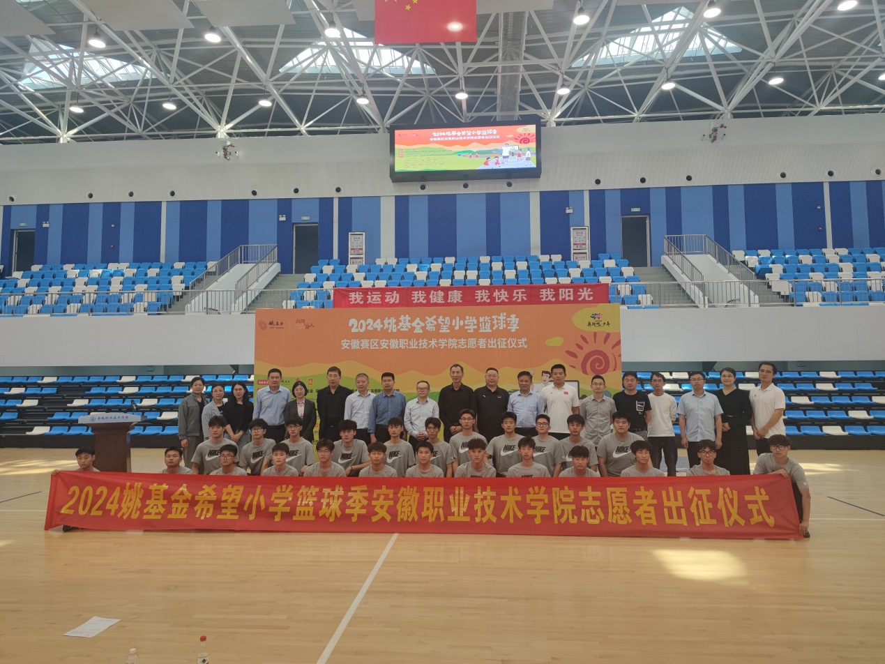 (体育健康学院通讯员 张进成)种下一颗种子,生出无限希望。为做好2024年我院志愿者篮球支教服务工作,5月10日,学院成功举办2024姚基金希望小学篮球季安徽赛区安徽职业技术学院志愿者出征仪式。院党委副书记、院长盛鹏,安徽省希望工程管理委员会办公室主任、安徽省青少年发展基金会秘书长李永军,院团委负责人、志愿者所属二级学院党总支负责人、团总支书记、相关辅导员参加本次活动。活动由团委负责人主持。