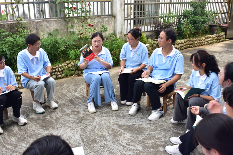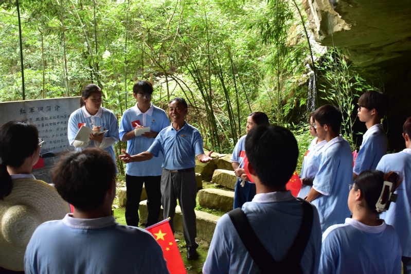 习近平总书记曾提出:“一个有希望的民族不能没有英雄,一个有前途的国家不能没有先锋。”中华民族历来崇尚英雄、敬仰先烈。为引导广大青年学生在革命圣地切身感受革命先烈艰苦卓绝的奋斗历程,在红色文化中汲取奋进力量。7月11日上午,实践团来到当地红军洞,老党员张玉国同志向我们介绍了红军独立营战士革命事迹,同学们深刻体会到了革命先烈在长征途中不畏强敌、坚韧不拔的高尚品格,以及红军不畏艰难、不怕牺牲、为革命事业奋不顾身的奉献精神。随后,同学们在红军洞里齐声背诵《七律·长征》,一字一句间表明了他们坚守初心使命,将革命薪火代代相传的决心。下午,实践团指导老师马争婧带着实践团全体成员学习了《习近平与大学生朋友们》一书,成员们表示一定牢记教导。当晚,岳西实践团与安徽师范大学实践团的同学们一同举办了文艺汇演,整场演出获得了当地政府和群众的一致好评。此次实践活动让同学们深切感受到了自身的使命和职责。他们表示今后会积极学习和传承红色文化,为乡村振兴、强国建设和实现中华民族的伟大复兴而持续奋斗。
